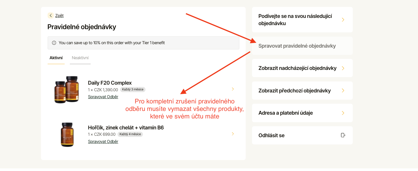 Pravidelný odběr můžete zrušit sami ve svém účtu. Postupujte takto: